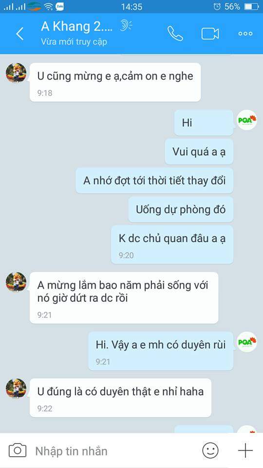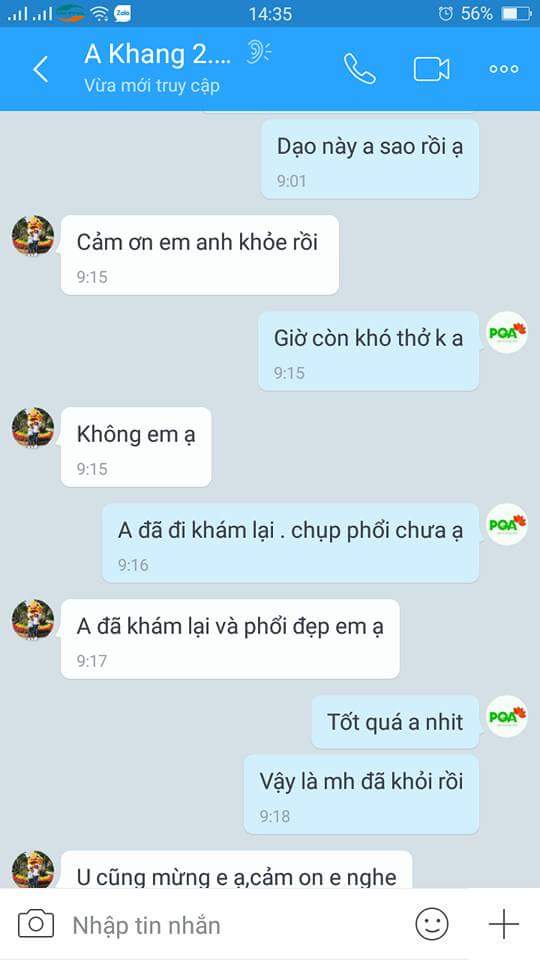 Bác sỹ bảo anh “Nếu ai điều trị khỏi bệnh cho anh thì người đó đạt giải Nobel”. Đến năm 2016, anh vô tình lên mạng, biết tới sản phẩm Siro Ho Hen PQA, anh đã gọi điện được chuyên gia Huyền Trang tư vấn và về uống thử. Anh uống trong 02 tháng, cơn hen không lên nữa, đi khám bác sỹ còn quá bất ngờ về kết quả của Anh.