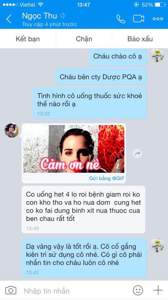 Sau đây là chia sẻ và lời cảm ơn của chú gửi tới công ty dược phẩm PQA