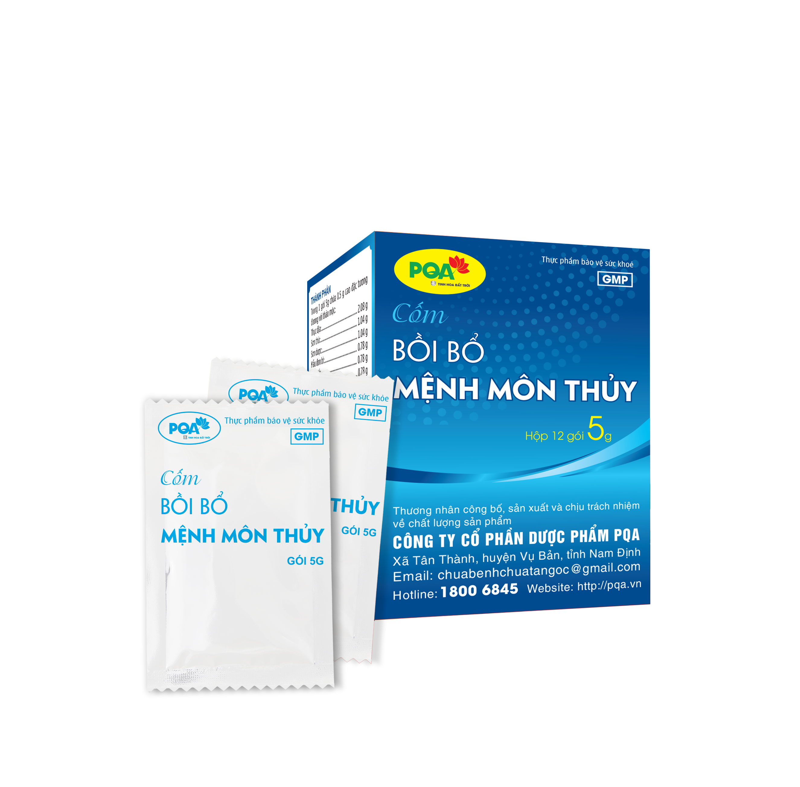 Cốm PQA Mệnh Môn Thủy là dược phẩm thảo dược giúp bồi bổ thận âm, nhuận sắc, tăng cường sức khỏe cho người bị âm hư hỏa vượng, huyết kém. Nóng trong gây đại tiện táo kết, tiểu ít.