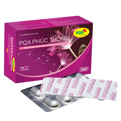 PQA Phúc Thống là dược phẩm thảo dược giúp bổ huyết. Hỗ trợ giúp điều kinh nguyệt, giảm các triệu chứng đau bụng kinh, rong huyết dùng cho phụ nữ sau sinh bị đau bụng, rong huyết kéo dài.