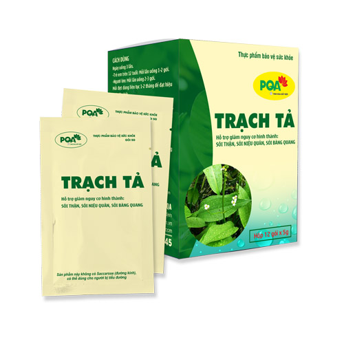 Ứng dụng tinh hoa của bài thuốc cùng với dây chuyền công nghệ hiện đại đạt chuẩn GMP, Công ty cổ phần Dược phẩm PQA đã sản xuất sản phẩm PQA Trạch tả có công dụng giúp thanh nhiệt, lợi niệu; Hỗ trợ giảm nguy cơ hình thành sỏi thận, sỏi niệu quản, sỏi bàng quang. DÙng rất tốt cho người tiểu dắt, tiểu buốt do sỏi thận, sỏi đường tiết niệu, sỏi bàng quang.