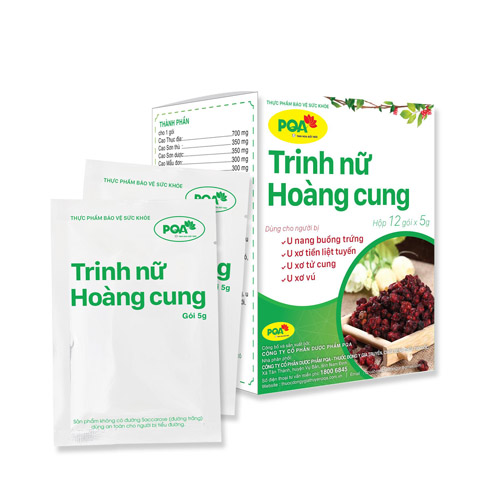 PQA Trinh Nữ Hoàng Cung là dược phẩm thảo dược hỗ trợ giảm các triệu chứng: u xơ tử cung, u nang buồng trứng, u tuyến vú lành tính. U xơ hoặc phì đại tiền liệt tuyến, tiểu tiện khó, tiểu đục, tiểu són ở nam giới.