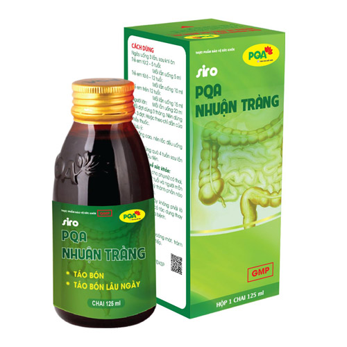 Siro PQA Nhuận Tràng 125ml là dược phẩm thảo dược dùng cho người lớn và trẻ em bị táo bón giúp nhuận tràng, giảm táo bón hỗ trợ điều trị táo bón, táo bón lâu ngày.